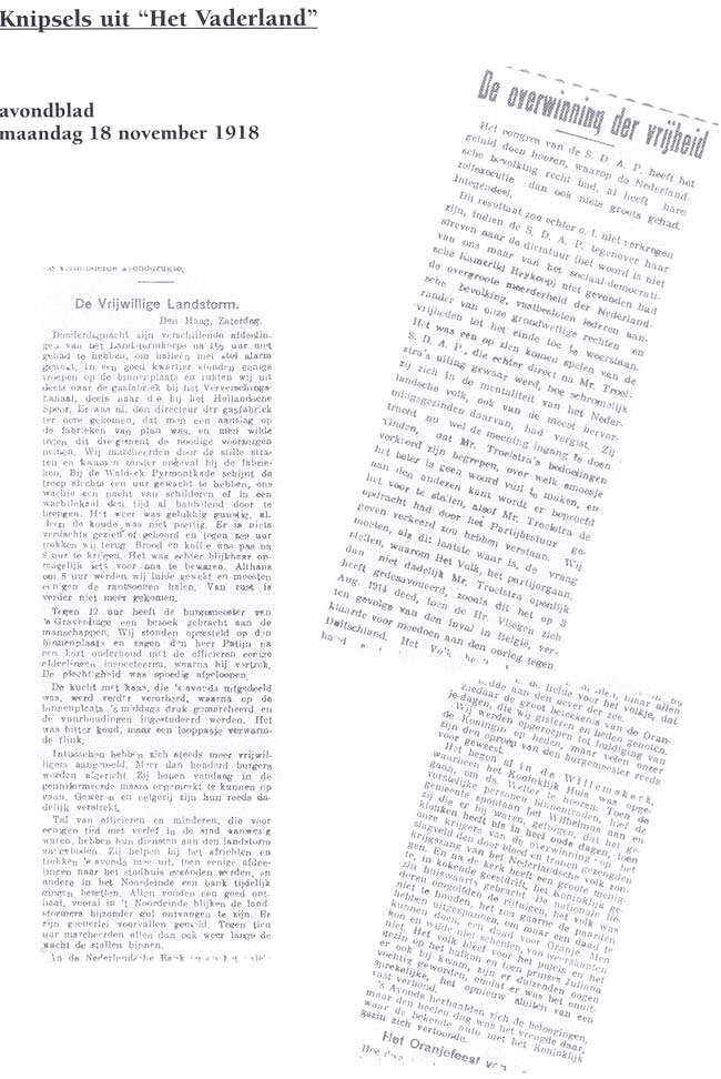 Onder leiding van luitenant J.L. van Dam vertrok op 13 november 1918 een peloton van de "Gele Rijders" uit Schijndel naar Amsterdam om militaire bijstand te verlenen. Later blijkt dat men niet in aktie hoefde te komen. Op 23 november 1918 keerde het peloton dan ook weer huiswaarts.
