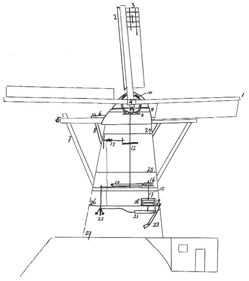 op de wind gezet worden. De molen is hiertoe uitgerust met een constructie,